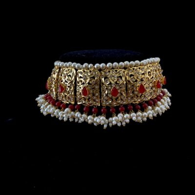 Thappa Kundan choker set with pearls drops.