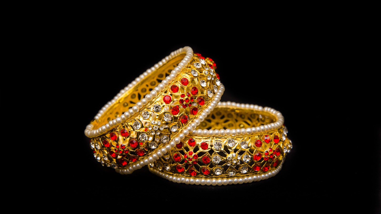 Gold Plated Hyderabadi openable bangles. Beautiful handmade openable bangles embellished with white and Red pearls. size 2.6 can fit to 2.8 also.