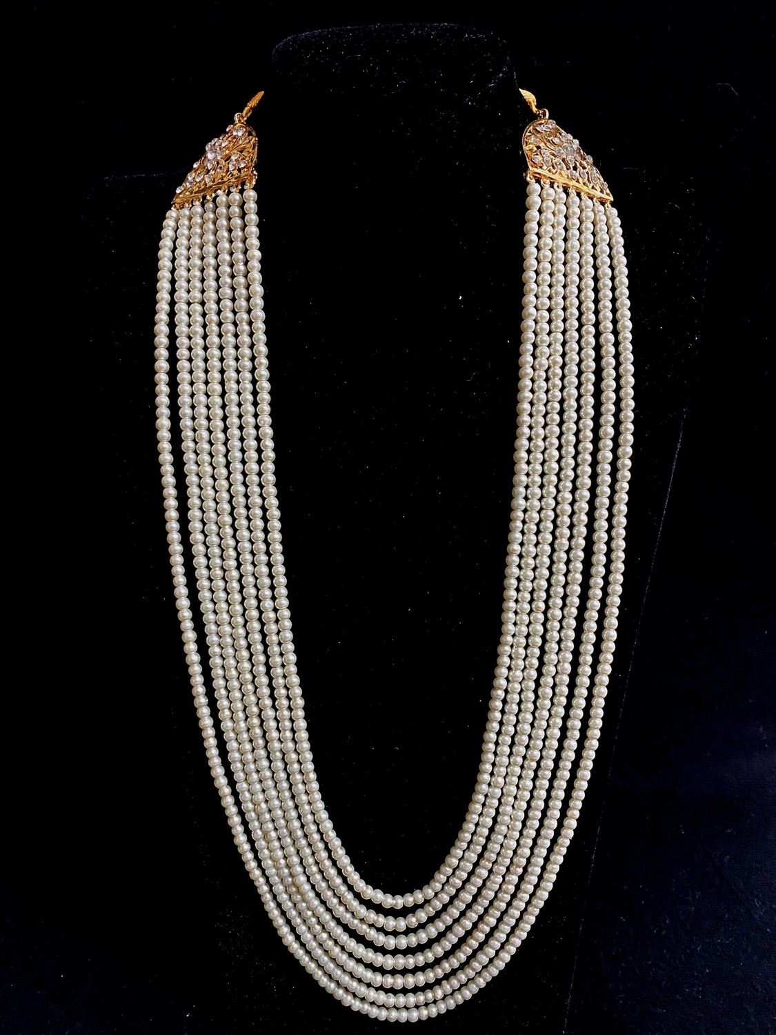 Long multi strand pearls necklace Malla. It is a unisex item. you can wear it as rani haar.it is also ideal for groom. it goes perfectly with traditional Indian attire.