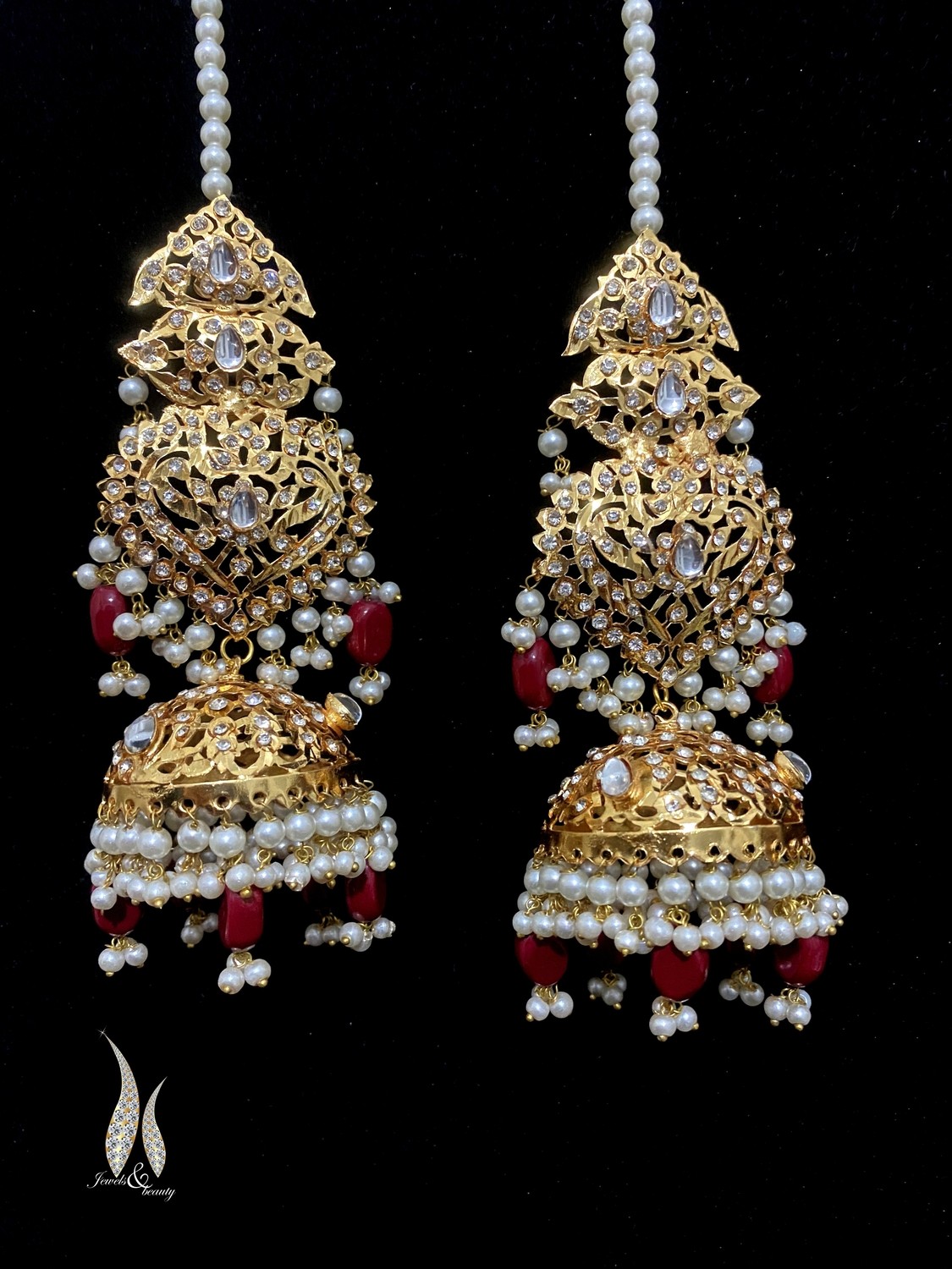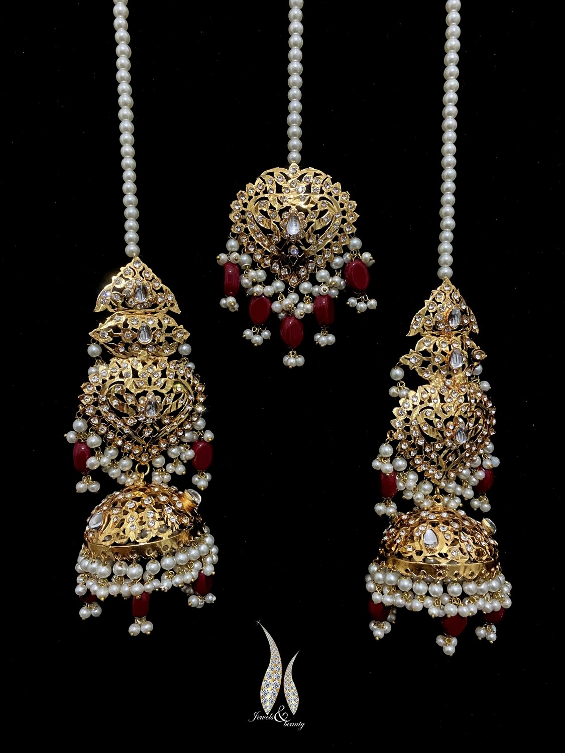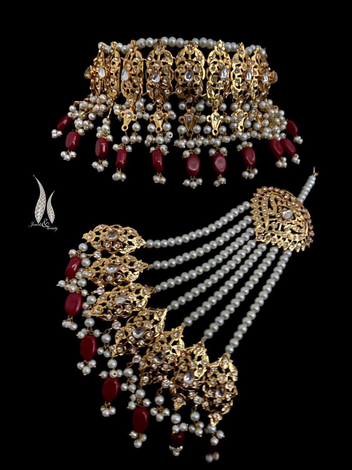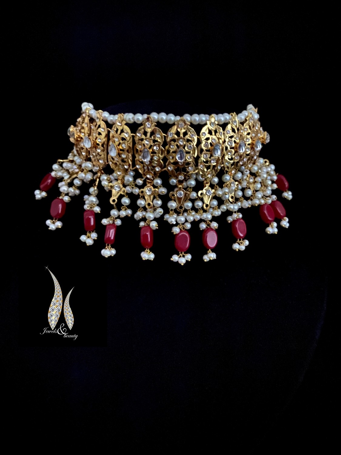 Maiza Hyderabadi Jewellery set. Fully handcrafted with clear stones, pearls and beads.