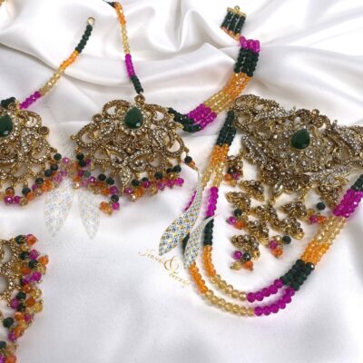 Maiza Hyderabadi Jhummar. Fully handcrafted with clear stones, pearls and bead.