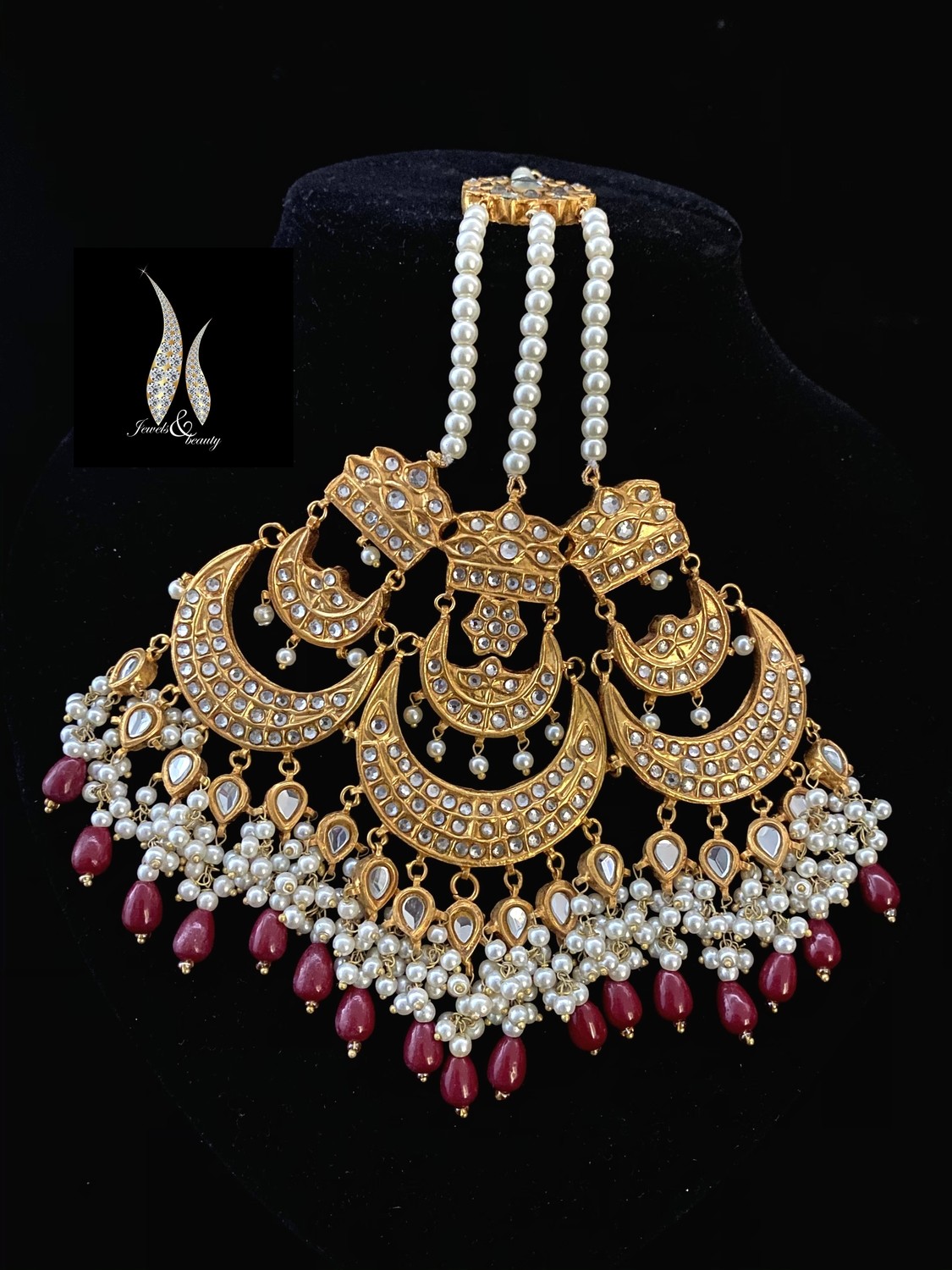 A stunning statement set handcrafted with kundan stones, pearls and beads.